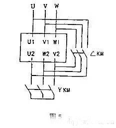 當(dāng)AKM的主觸點(diǎn)閉合時(shí),如圖4所示,u相繞組U1和U2的頭端和尾端連接到u相電源,V和w相繞組的頭端和尾端分別連接到V和w相電源,因此三相繞組沒(méi)有電流,因此Y正常啟動(dòng),并且△ 停止跑步。